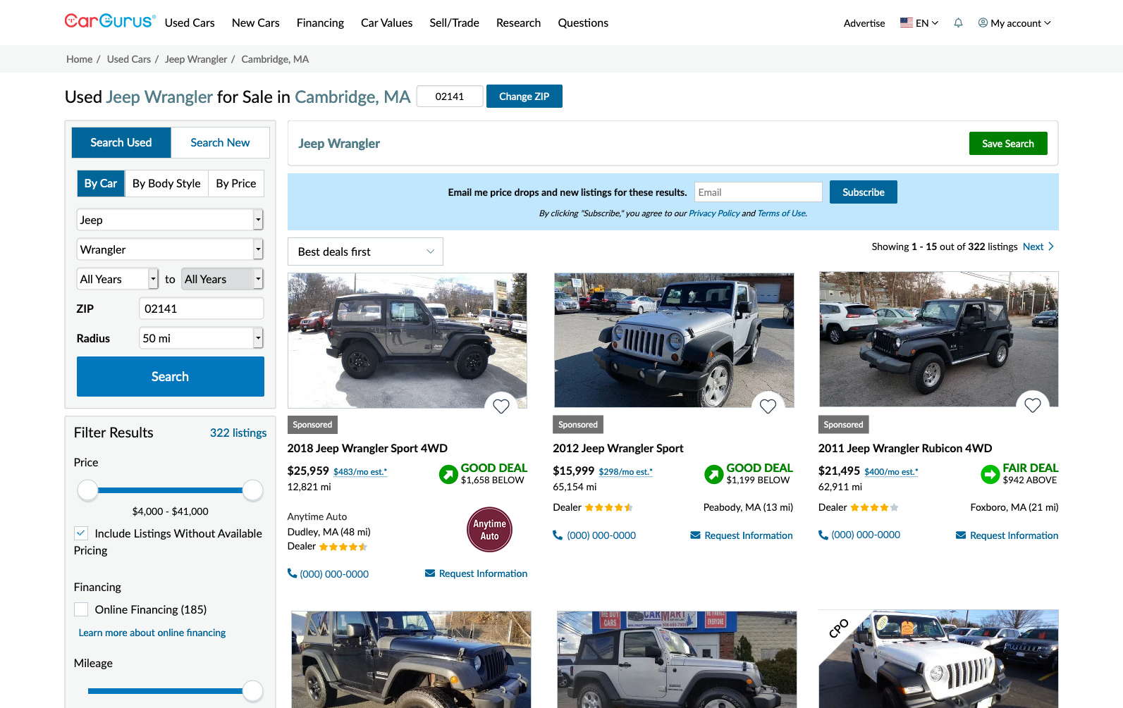pick for finding cheap cars. CarGuru differs from most other online auto